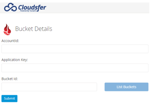Enter your Backblaze B2 Account ID and Application Key, then click “List Buckets” to retrieve a list of containers in your system.