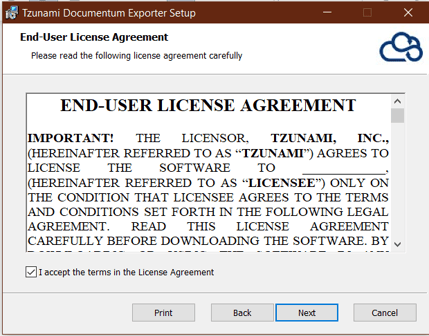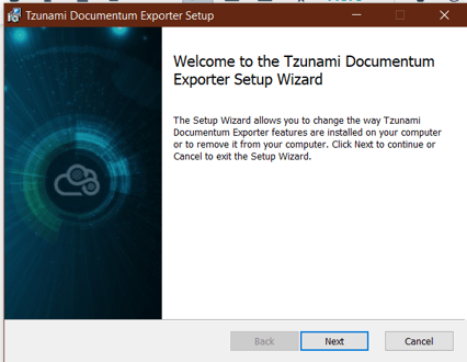 The Tzunami Documentum Exporter Setup Wizard (Welcome window) will launch. Click Next to proceed.