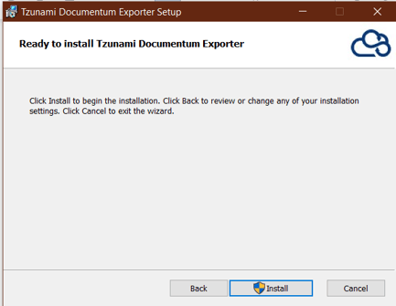 In the Ready to Install Tzunami Documentum Exporter panel, click Next.