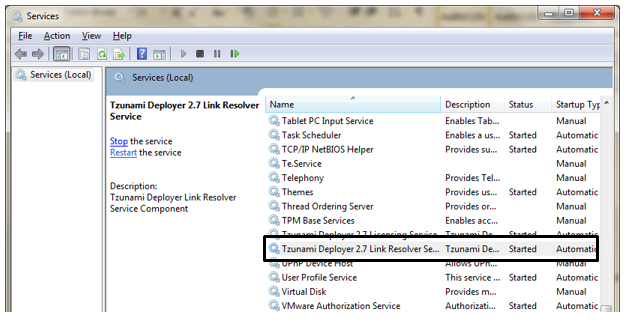 7. Start the Tzunami Deployer 3.0* Link Resolver Service from the Services console.
