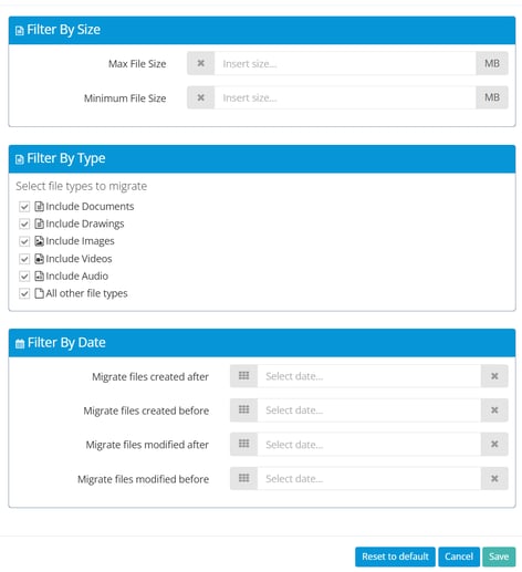 - Click on 'Option' button, where you can apply filters to customize your migration: