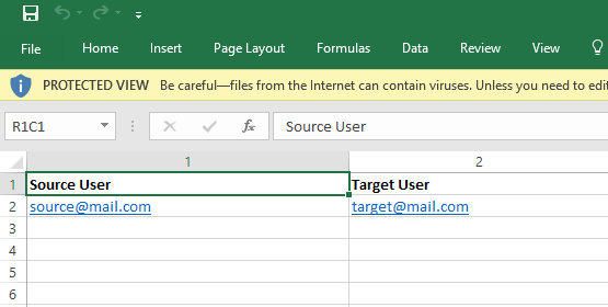 Permissions are migrated as-is. Use this when source and target users have identical email addresses.